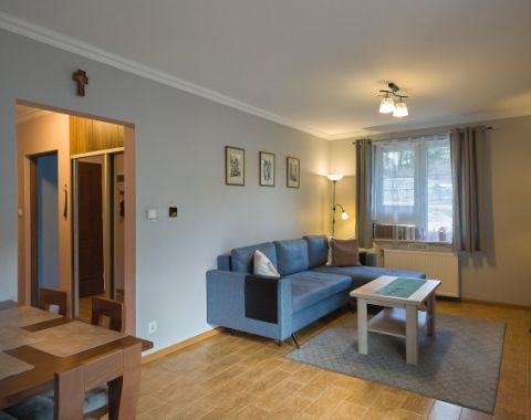 This elegant, comfortably equipped, 3-rooms (47 m2) with a kitchen-place, a bathroom and 2 balconies apartment in a new villa AVANGARDA in the centre of Szklarska Poręba gives all comforts to its guests. Villa is located on a peaceful street nearby a city park and close (50 m) to the centre with its shops, restaurants and all atractions. Building lies on south slope of valley Krzemienna and from windows of the suite you can see beautiful view on mountains, resort and park.