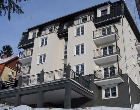 LUXURY APARTMENT in CRISTAL RESORT****The high standard! Two-room apartment (40 m2) with a kitchenette and a glass veranda. View of the Szrenica, wi-fi, parking. The hotel swimming pool, year-round outdoor hot tub, sauna, spa, restaurant, elevator, common room for children, a playground, outdoor fitness.HIGHLY RECOMMENDED!!